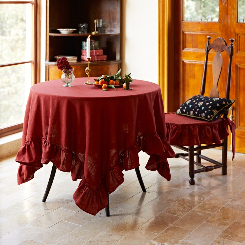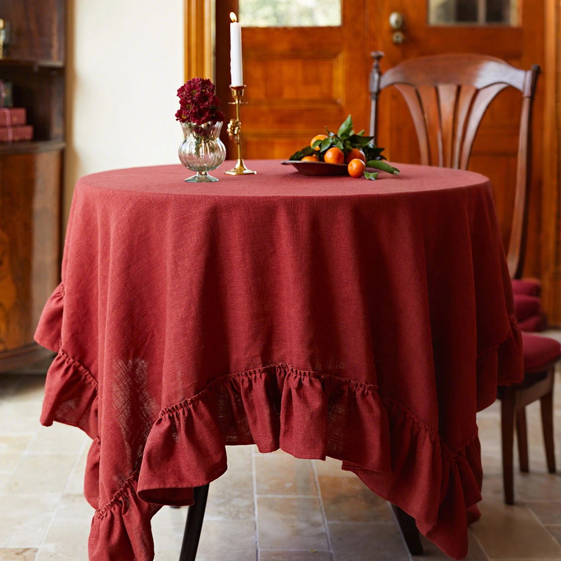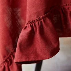 Falu Red Linen Ruffled Tablecloth