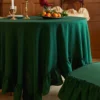 Crafted from soft, textured linen, this tablecloth drapes beautifully, with generous ruffles that cascade to the floor. It’s made for slow Sunday brunches, quiet afternoon teas, and gathering the people you love. A piece that brings warmth and a whisper of countryside charm to any meal.