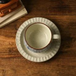 Indigo Grass-Print Mug&Saucer
