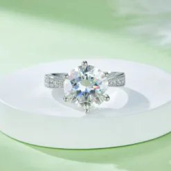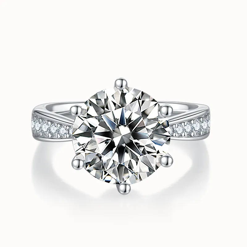 Get ready to turn heads with this dazzling 5-carat round moissanite ring! Featuring a classic 6-prong setting, this piece showcases the brilliance of the main stone while 14 accent stones line the sterling silver band, adding just the right touch of extra sparkle. The band measures 2.5mm wide, striking the perfect balance between sturdy and sleek. Whether you’re dressing up for a special occasion or just want to add some shine to your everyday look, this ring is here to bring on the sparkle without the fuss. It’s a timeless choice for anyone who loves a bit of glam with their silver.